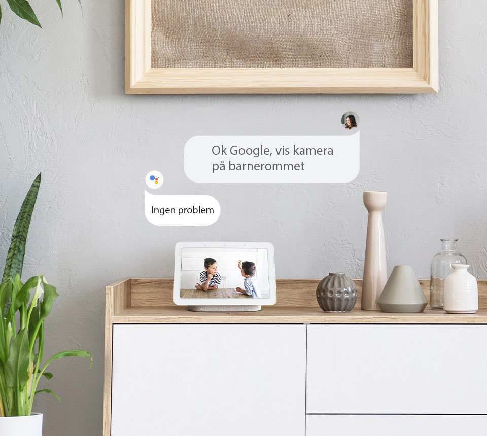 Reolink RLC-511WA er Google Assistant kompatibelt. Si f.eks. Hei Google, se utekamera» og se video fra ditt kamera på Google Nest HUB eller via Chromecast.