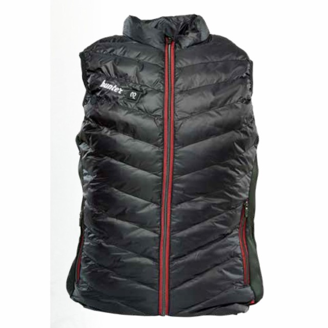 Hunters varmevest er utstyrt med fem varmepaneler (to foran og tre bak) som reguleres ved hjelp av en trykknapp på brystet og du kan velge mellom tre forskjellige temperaturer.