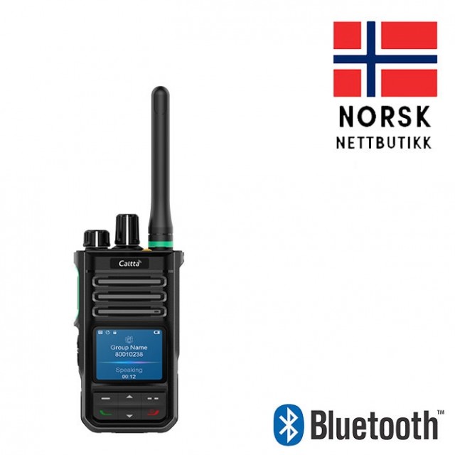Radio, batteri, bordlader, belteklips, kort antenne.