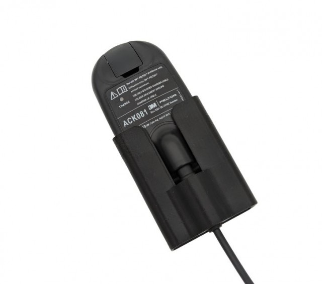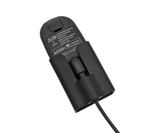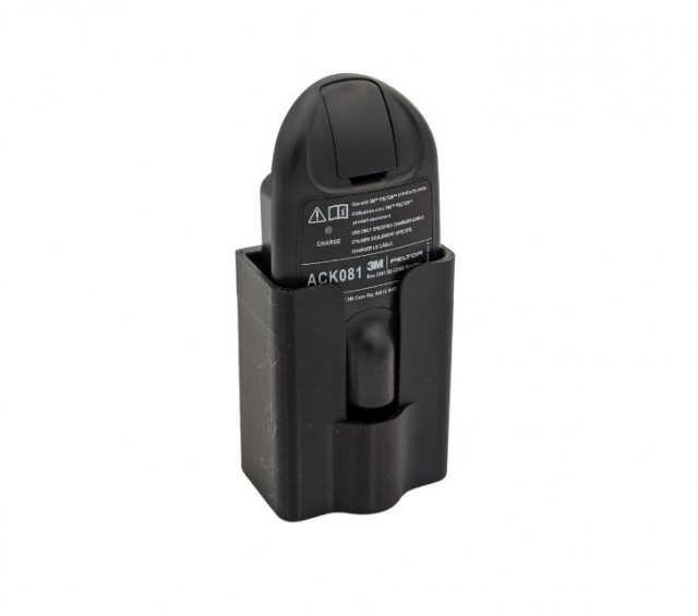Holder batteri og lader på plass. Kan monteres fast på vegg for ryddig og grei lading av batteritypen ACK081 og ACK082 ( Atex ).