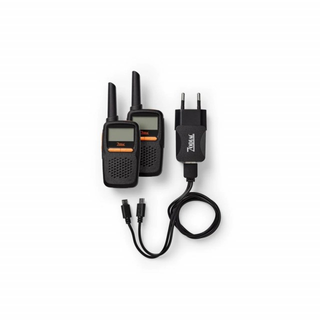 Zodiac Light Pro leveres som duo-pack med to radioer, to batterier, en USB micro lader, to belteklips og manual.
