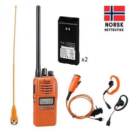 Pakken består av: Radio, 2 stk batteri 2280 mAh, kort og lang antenne, belteclips, lader 230V, ørehøytaler m/fluemikrofon (Pro-P610 LS/LA)